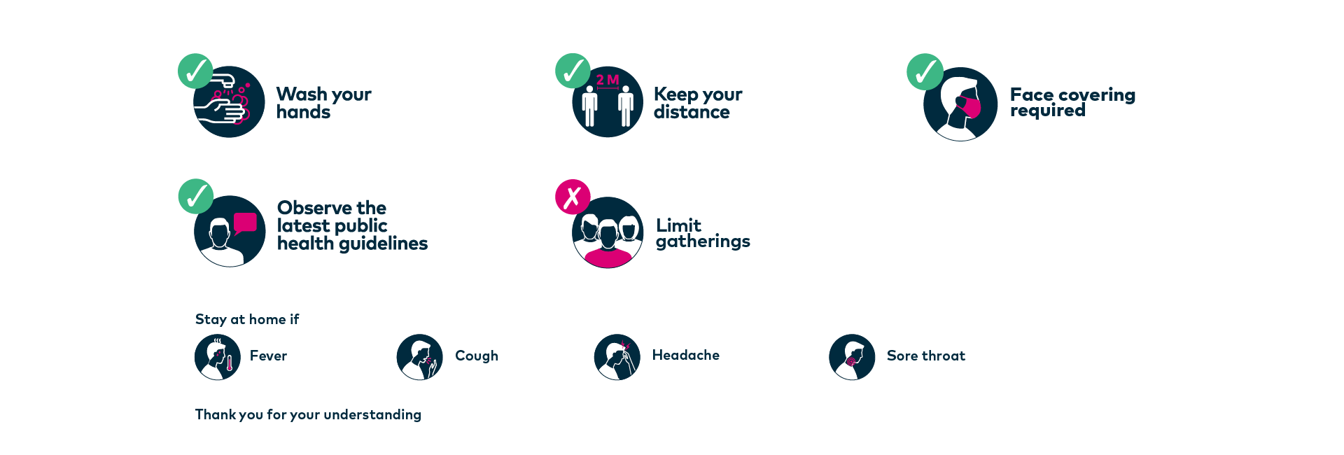 We care about your health and the health of our employees. Our Code of conduct has been developed as a reminder for visitors to follow safety measures in place. Please see the Code below. You don’t need to remember these rules, as we’ll have many signs posted throughout our shopping centre as reminders.